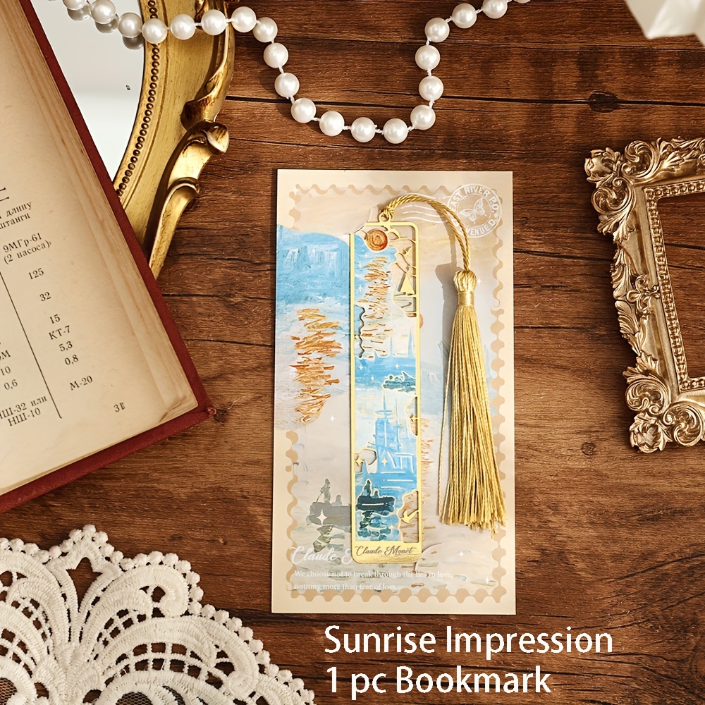 1pc Retro Floral Painting Metal Bookmark Hollow Bronzing Bookmark With Tassel Stationery Gifts For Book Club Reader Birthday Festival Writers Book Lovers Friends Teachers Students