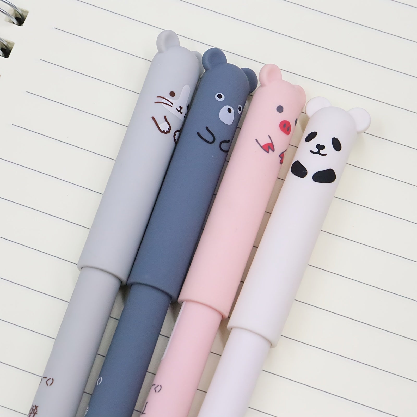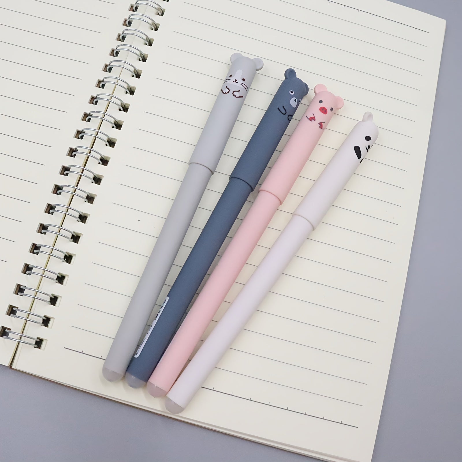 30/4pcs Erasable Gel Pen 0.5 Refill Set Cartoon Animals Cute Cat Erasable Pen Refill Rod Washable Handle Pen School Stationery Needle Tip For Writing Notebooks Girls Cute Gel Pens Office Accessories