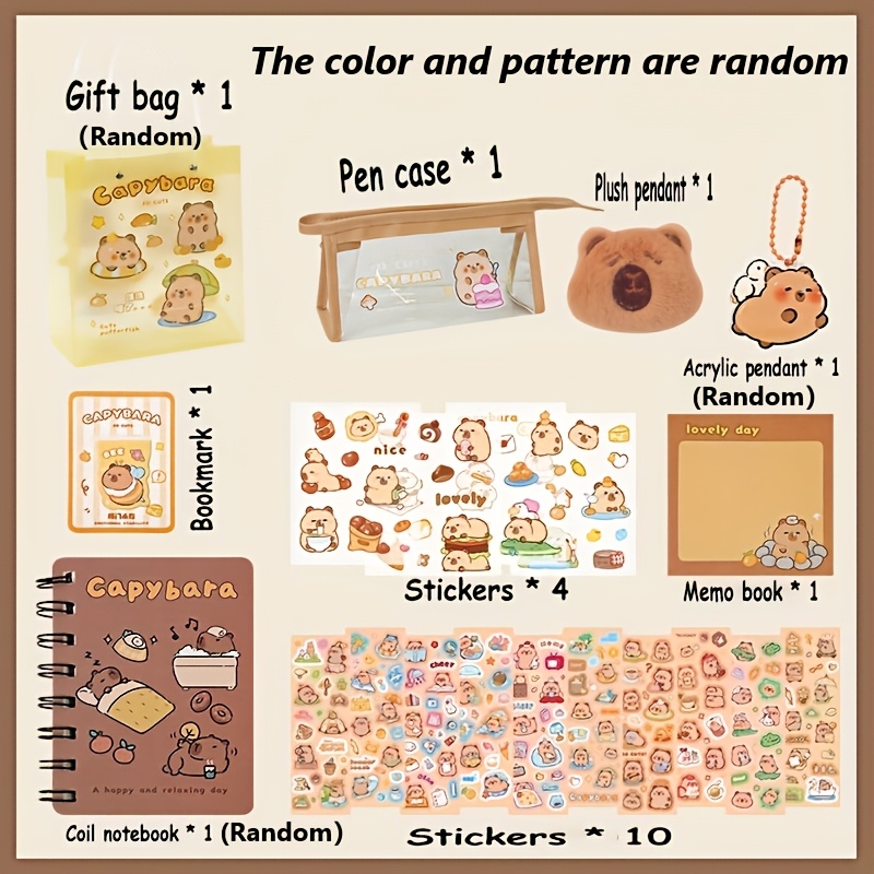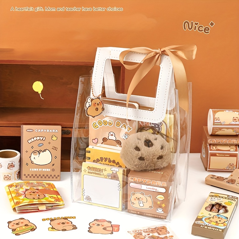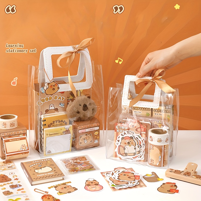 Capybara-Themed Stationery Gift Set, Fine Writing Instruments Bundle, Plastic, Yellow, with Notepads, Pens, and Accessories, for Students, Graduates, Journaling, and Birthday Presents, Age 14+