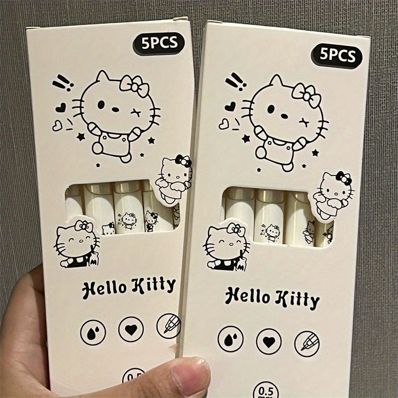 [Hello Kitty Pen] Sanrio Hello Kitty 5pcs Set | Cute Neutral Pen Black, Y2k High Aesthetic Value Minimalist Carbon Pen Black Pen, Korean Style Stationery Set, Creative Gift