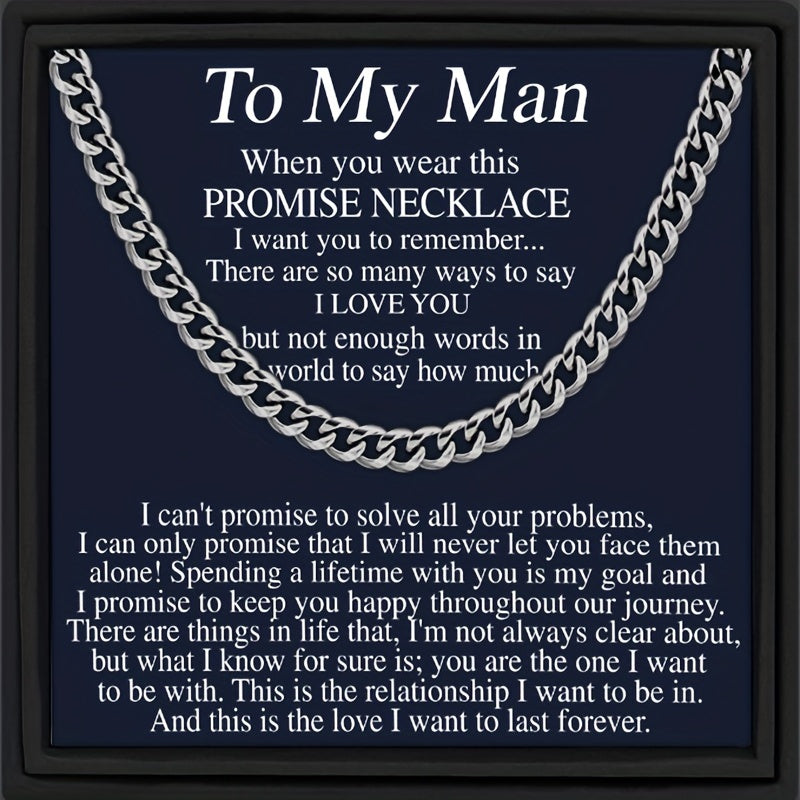 Stylish Classic Stainless Steel Cuban Chain Necklace - Promise Necklace To Men - Card And Gift Box Packaging Birthday Gift Father's Day Gift Christmas Gift