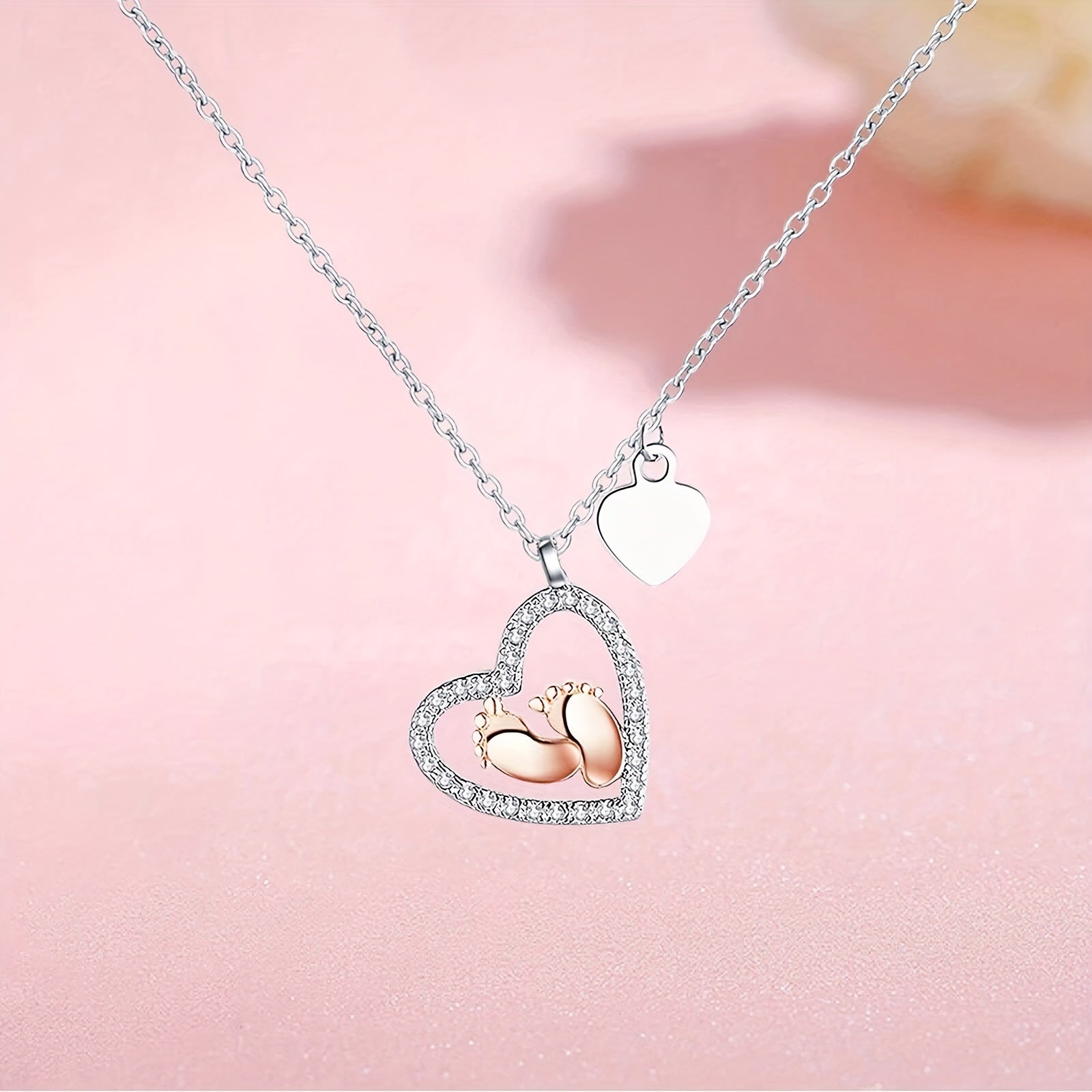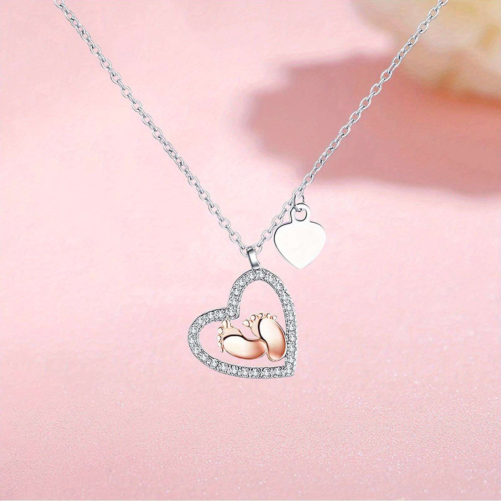 Trendy Heart-Shaped Baby Foot Pendant Necklace - Hypoallergenic Zinc Alloy, Adjustable Chain, Gift Box Included, Birthday, Christmas, Mother's Day Gift Idea for Mom, Grandma, Wife, Girlfriend, Decorative Accessories